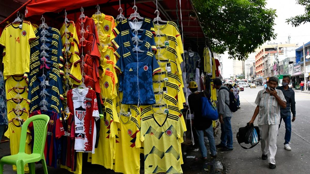 En los días previos al partido entre Colombia y Brasil la venta de camisas de la selección aumentó, según lo expresado por Alfredo Rivera, un comerciante informal que trabaja en el centro desde hace 18 años.