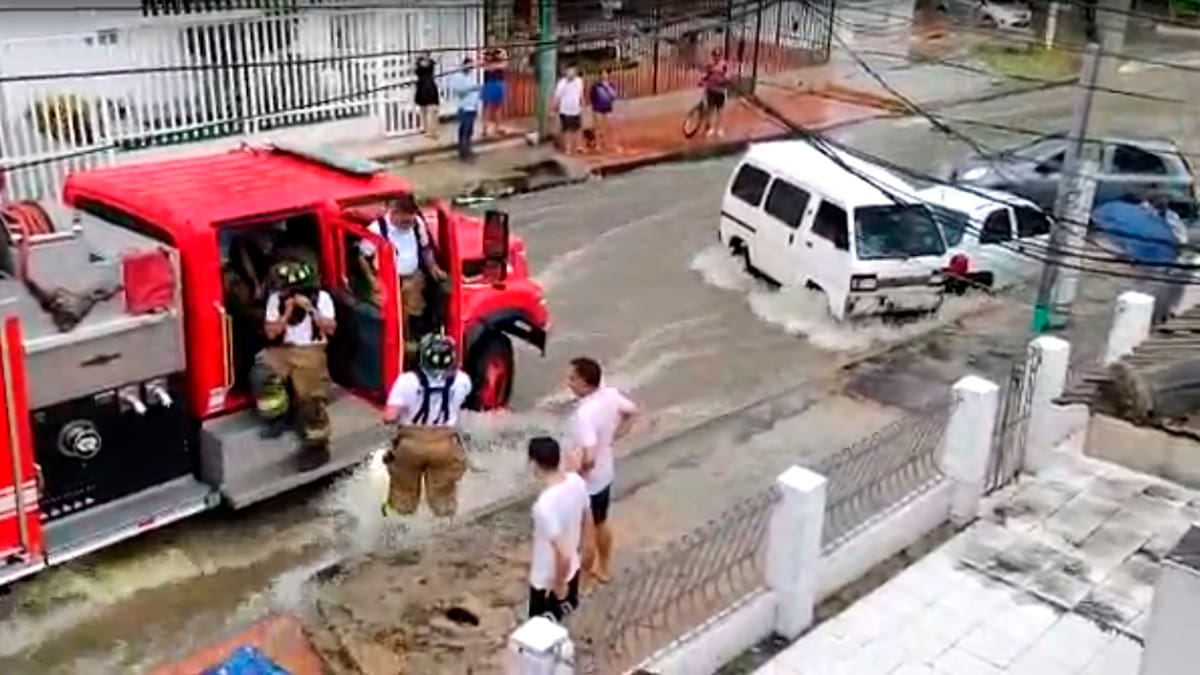 En la carrera 32 con calle 68C-67, tres carros fueron arrastrados por un arroyo. Por fortuna no se presentaron lesionados. El Cuerpo de Bomberos atendió la emergencia.
