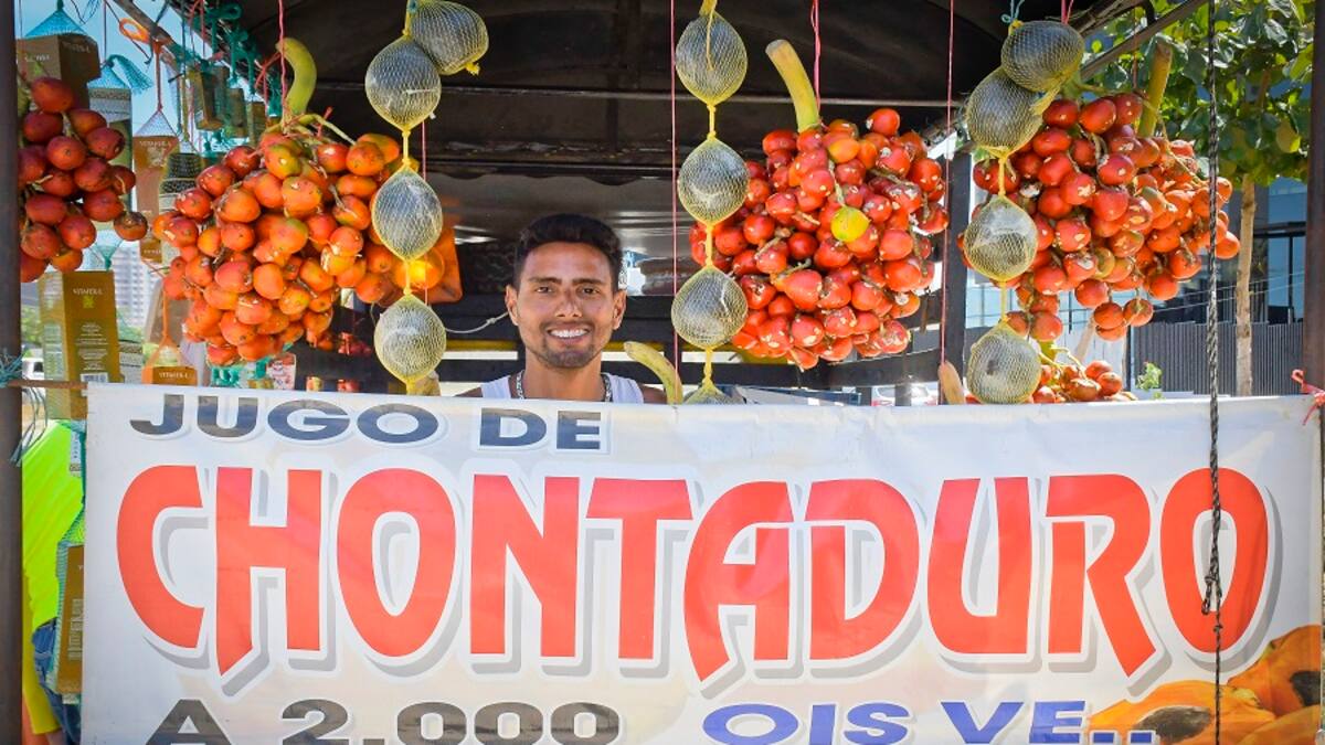 'Tengo un año vendiendo. El chontaduro se ha comercializado más ahora, la gente lo toma bastante en jugo, que trae miel y kola granulada. Taxistas, conductores de buses, camioneros, todo el que pasa por aquí (rotonda de la Circunvalar) mira y compra', menciona Jorge, quien además manifiesta que dejó su patria hace 5 años por falta de oportunidades.
