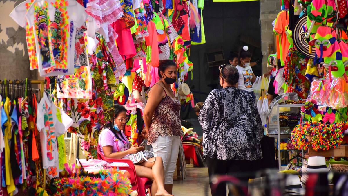 En esta galería hay comerciantes que tienen sus negocios de confección y distribución de accesorios como es el caso de Nelfi Rodríguez, quien desde hace 40 años trabaja realizando artesanías de Carnaval y hace cuatro las vende en este espacio.