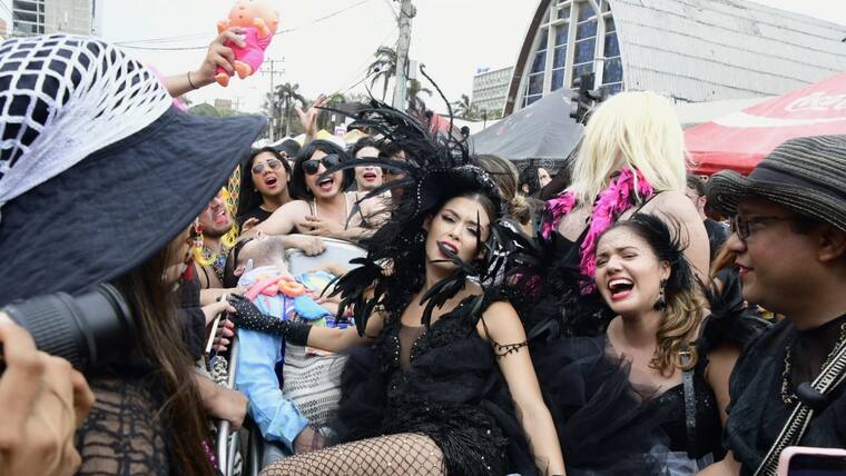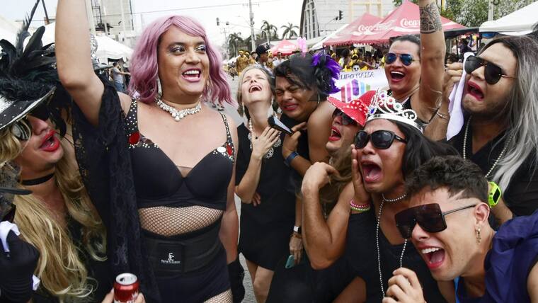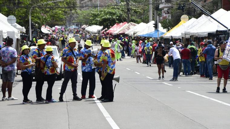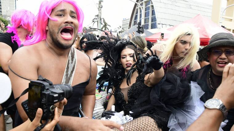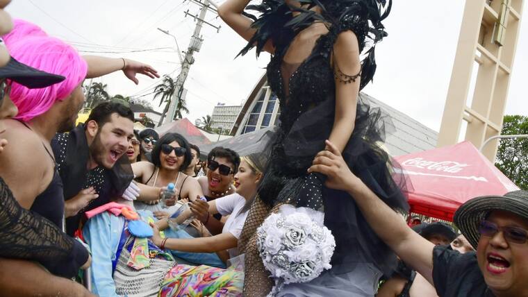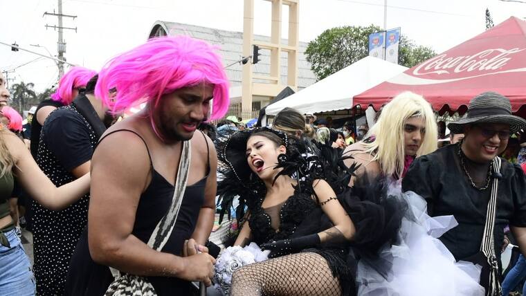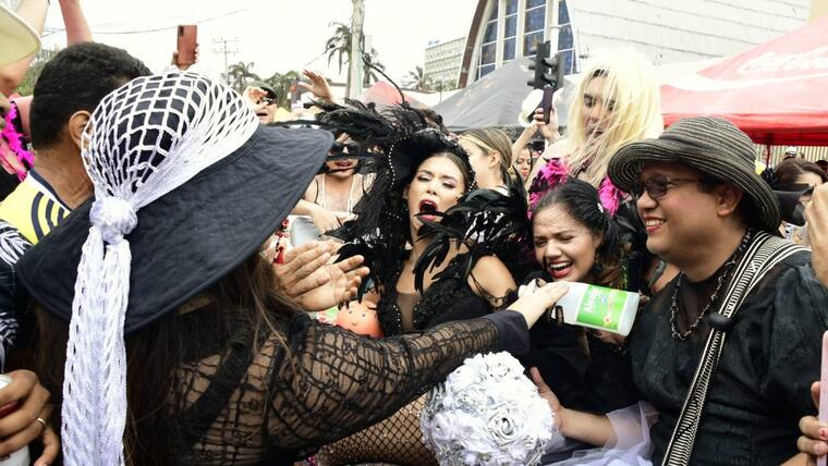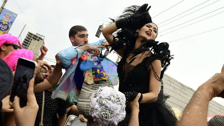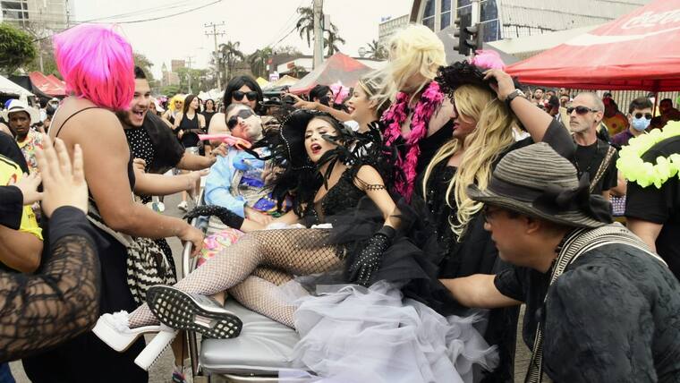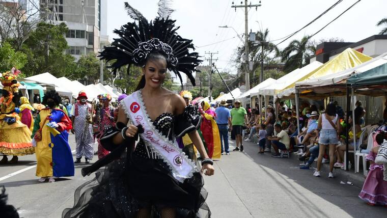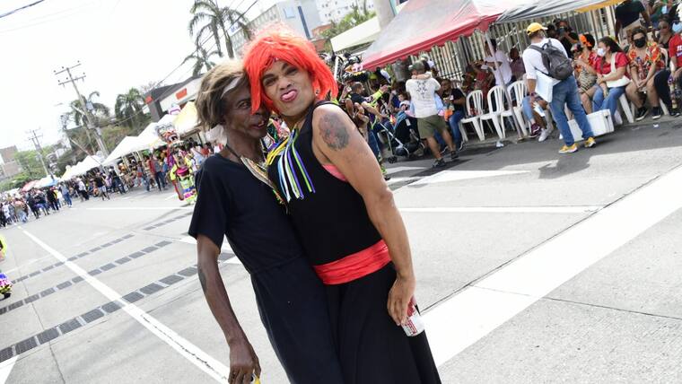 Por toda la calle 84, hombres disfrazados de mujeres, conocidos como ‘las viudas alegres’, acompañaron a la soberana de la fiesta de Barranquilla, Valeria Charris, a despedir a ‘Jose’.
