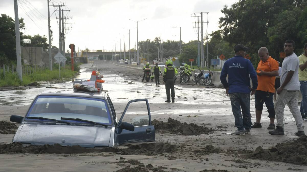 Un vehículo sumergido en el lodo fue el saldo que dejaron las fuertes lluvias de este domingo en la Circunvalar de la Prosperidad, tras la creciente súbita de un arroyo en el sector de Villa Campestre. Al parecer, las aguas provenientes de construcciones que se desarrollan en este sector arrastraron una gran cantidad de piedra y lodo que terminó acumulada en la vía, afectando la movilidad y sepultando parcialmente un carro que circulaba por el sector.