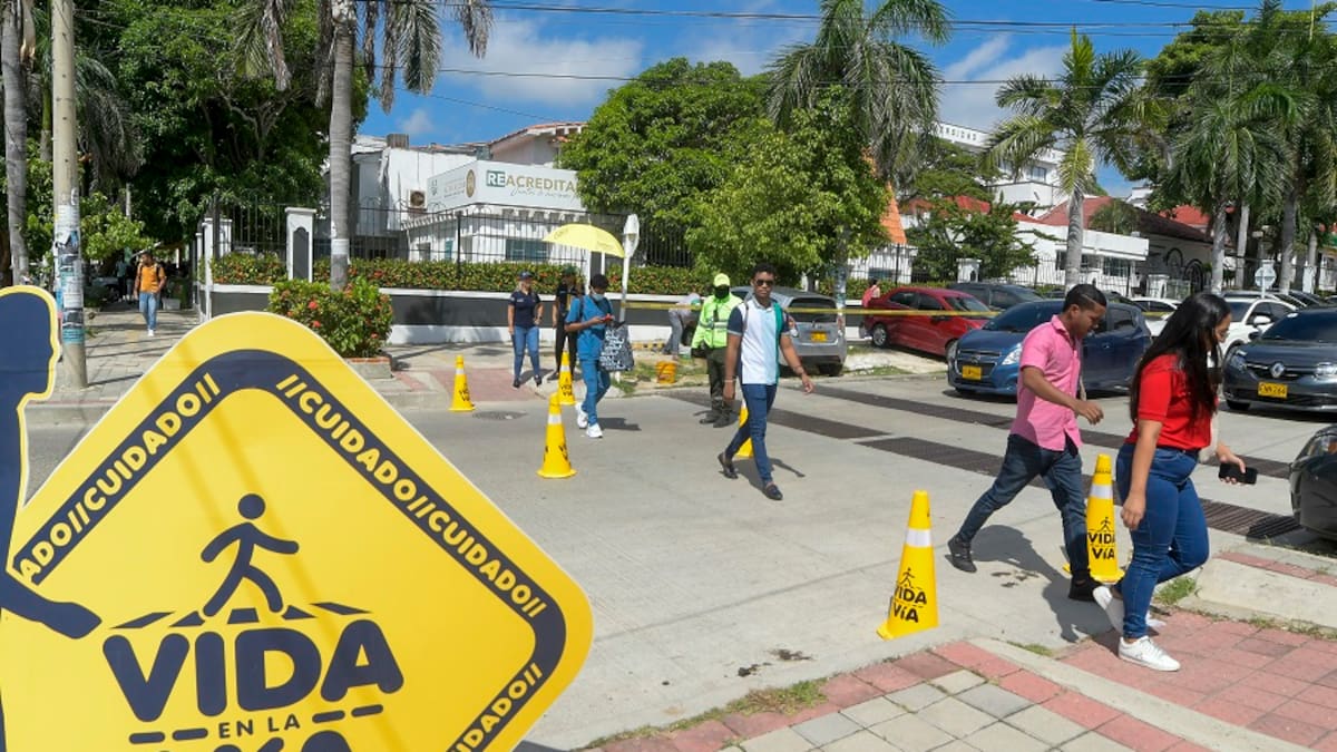 La intercesión de la calle 58 con carrera 54 fue el espacio en que este miércoles se llevaron a cabo jornadas pedagógicas para conmemorar el Día Mundial del Peatón en la ciudad de Barranquilla.
