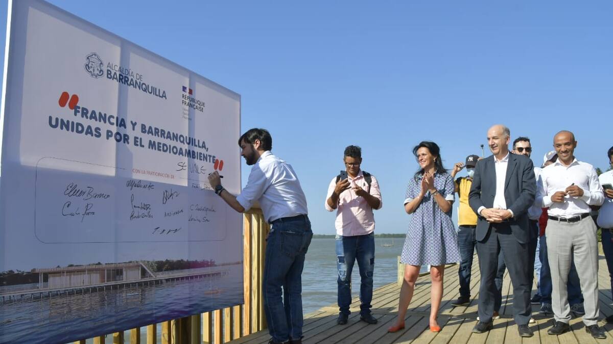 Para reafirmar la alianza entre Francia y Barranquilla, impulsando el trabajo en pro del desarrollo territorial sostenible, la protección de la biodiversidad y la inclusión social, el alcalde Jaime Pumarejo y representantes del país galo se dieron cita en la Ciénaga de Mallorquín para firmar un nuevo convenio de colaboración.