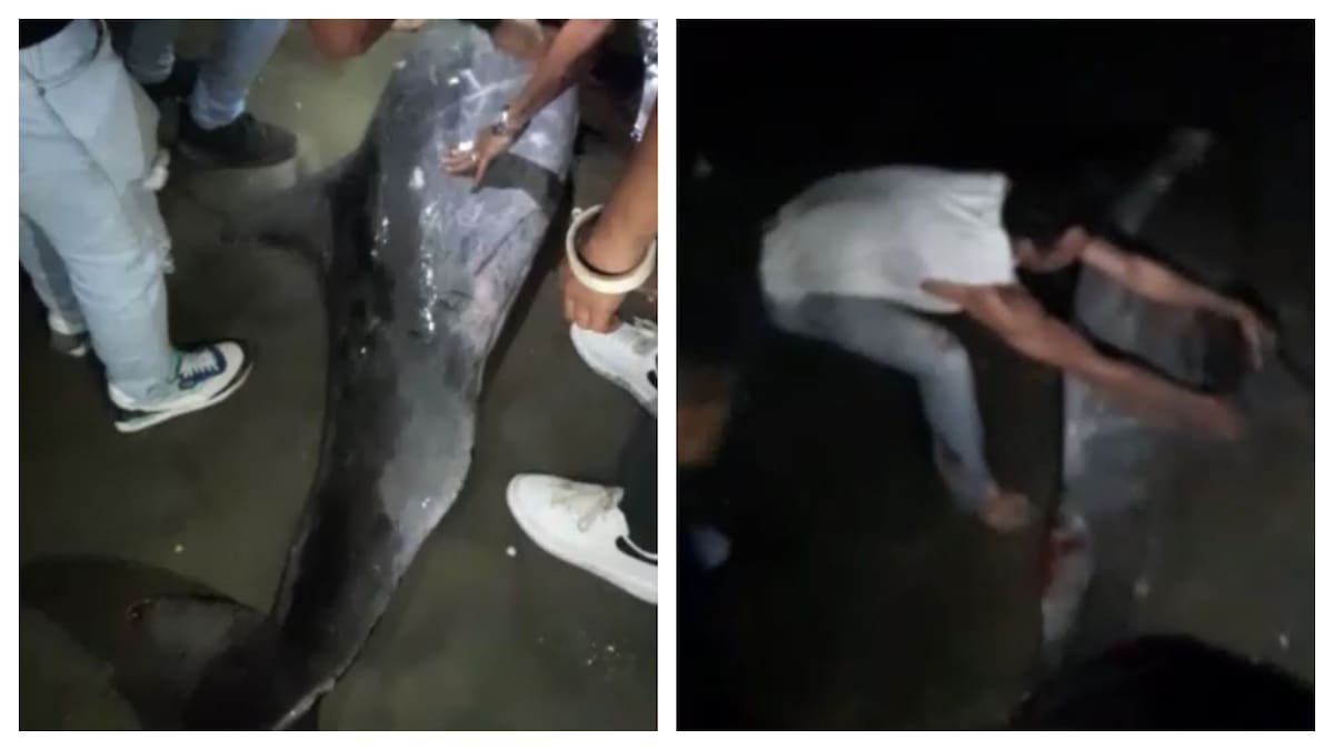 'En el momento pensábamos que era un tiburón, cuando ya el oleaje lo viene trayendo y arrastrando hacia las piedras, donde se vuelve peligroso hasta para un animal de esa envergadura, intentamos sacarlo porque estaba encallado en muchas piedras y ya no era tan profundo', señaló.