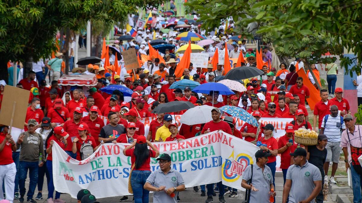 Un ambiente festivo se vivió en las calles de Barranquilla durante la movilización liderada por centrales obreras y organizaciones sociales por el Día Internacional del Trabajo.