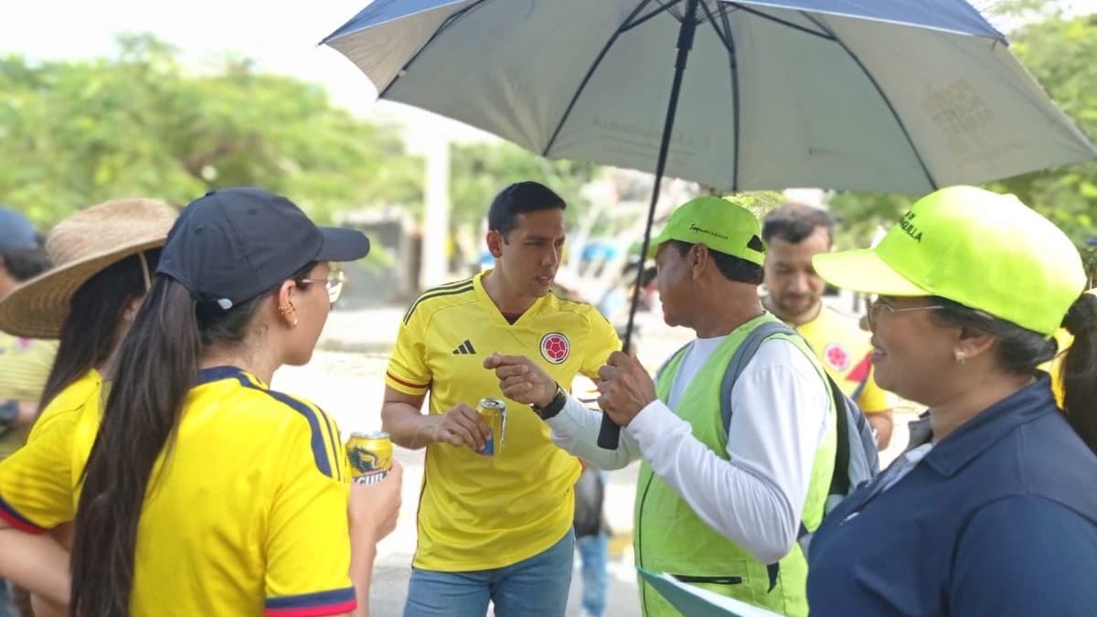 A las afueras del estadio Metropolitano, donde se jugará el partido entre Colombia y Venezuela por las eliminatorias al Mundial 2026, la Secretaría de Tránsito y Seguridad Vial ha adelantado labores de sensibilización a los aficionados.