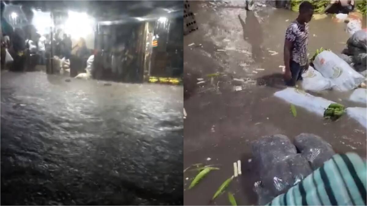 Usuarios de Wasapea EL HERALDO reportaron inundaciones en el mercado de Barranquilla. A través de videos suministrados se observa como varios vendedores del sector deben retener su mercancía para que no sea arrastrada por la fuerza del agua.