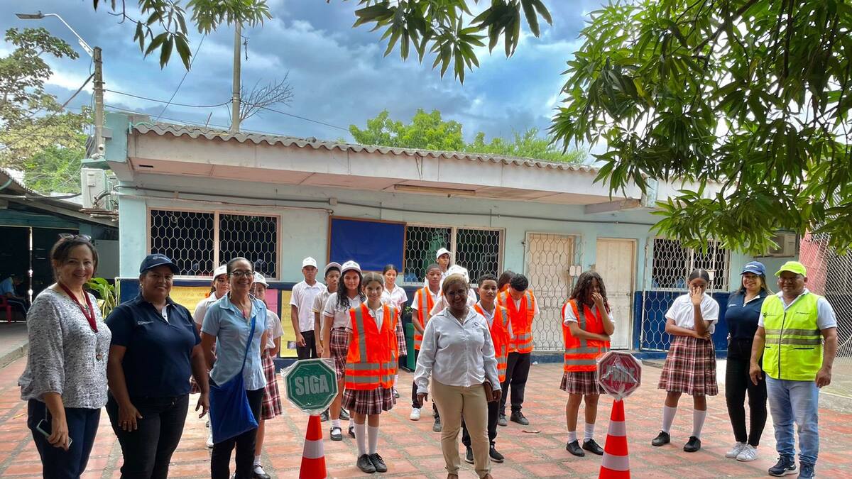 Durante esta semana, la Secretaría de Tránsito y Seguridad Vial de B/quilla entregó una dotación de implementos para los estudiantes de la I.E.D Luis Carlos Galán, quienes hacen parte del programa de Zonas Escolares con Movilidad Segura.