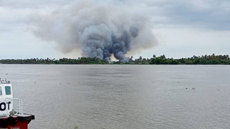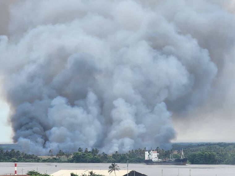La autoridad ambiental precisó que el Cuerpo de Bomberos de Barranquilla y Sitionuevo, con el apoyo de la Capitanía de Puerto, se encargan de las acciones para controlar el fuego.