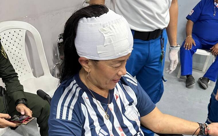 La mamá que fue a ver ‘Tu Papá’ terminó siendo atendida por la cruz roja, que la vendó en la cabeza.