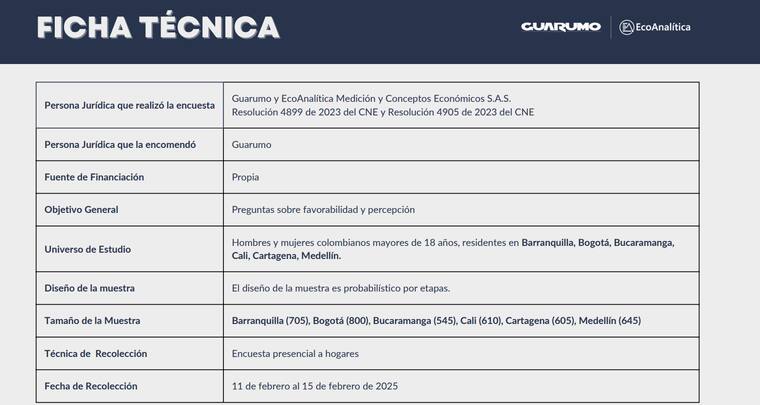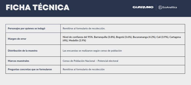 Por su parte, en Medellín, el mandatario Federico Gutiérrez tuvo un 55.2 % de aprobación, 37.2 % de desaprobación y el 7.6 % de no sabe, no responde. Mientras que en Cali, al alcalde Alejandro Eder, la encuesta señaló que tiene el 42.6 % de aprobación, 46.7 % de desaprobación y 10.7 % de no sabe, no responde.