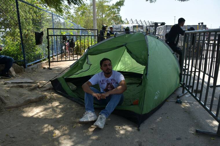 El sol del mediodía ya comenzó a hacer sentir su rigor, pero como si fuera una caricia la fuerte brisa de esta época del año los mantiene combatientes al lados de la dos carpas, una verde y otra rojiblanca, donde se resguardan para la espera y donde pasarán la noche.