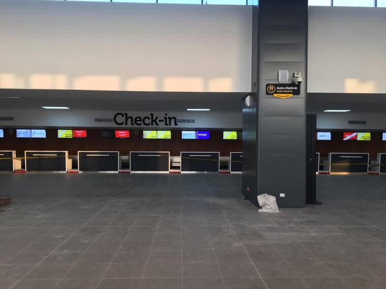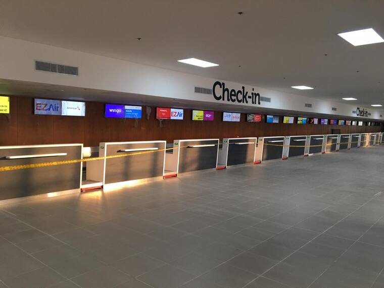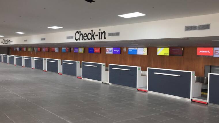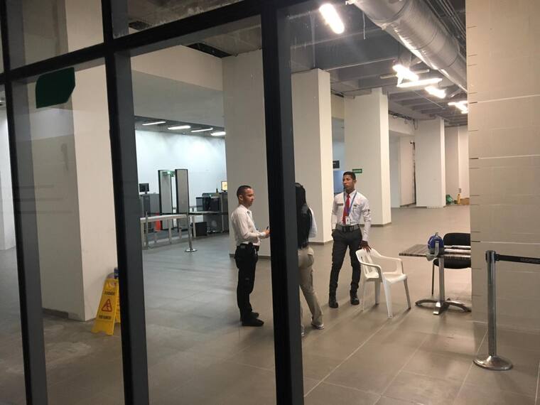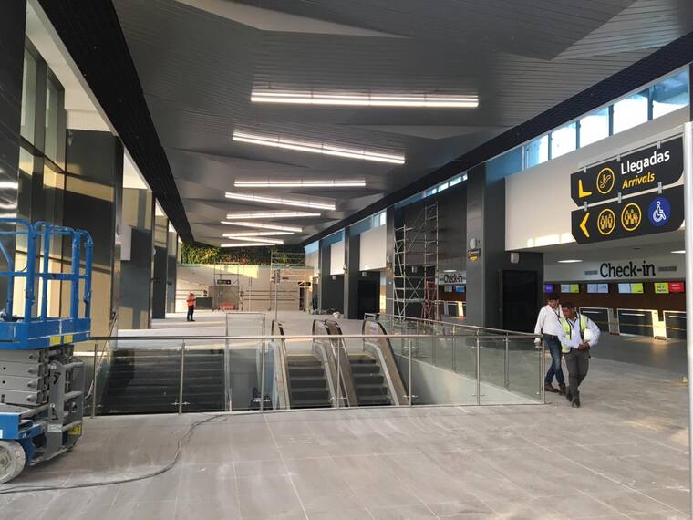 Así se ve a esta hora el aeropuerto Ernesto Cortissoz donde se trabaja para tener todo a punto en los distintos espacios de cara a la Asamblea de Gobernadores del Banco Interamericano de Desarrollo (BID) y de la Corporación Interamericana de Inversiones (CII). En las imágenes se observa el lobby de la terminal aérea, los nuevos filtros de seguridad que ya están operando, y el nuevo pasadizo de maletas para el área de vuelos nacionales e internacionales.