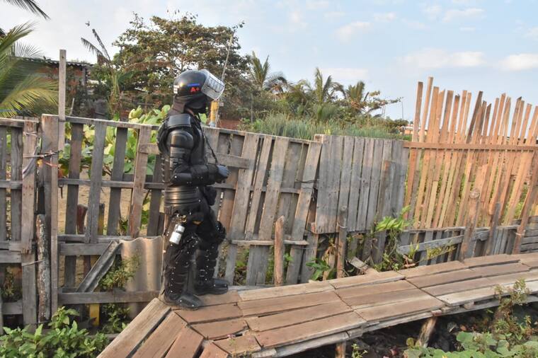 Dimar en coordinación con la Policía, Ejército Nacional, Armada, Esmad, Secretaría de Gobierno, y Secretaría de Control Urbano y Espacio Público adelantan proceso de desalojo en la Ciénaga de Mallorquín, en el sector de Las Flores con el fin de restituir bienes de servicio público.