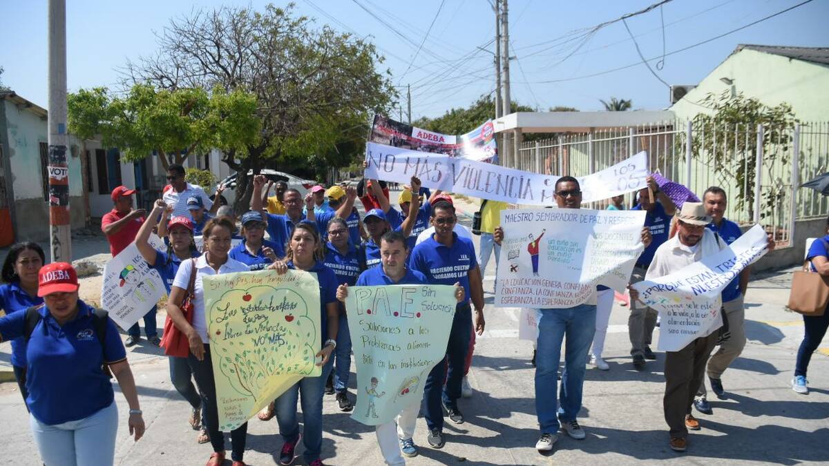 Al menos 100 docentes participan en la concentración que inició en la Institución Educativa Juan Acosta Solera, ubicada en la calle 112 A con carrera 24 del barrio Los Olivos, segunda etapa. Los educadores que hacen parte de Asociación de Educadores de Barranquilla, Adeba, marcharán hasta la Circunvalar como parte del paro nacional convocado por la Federación Colombiana de Educadores, Fecode.