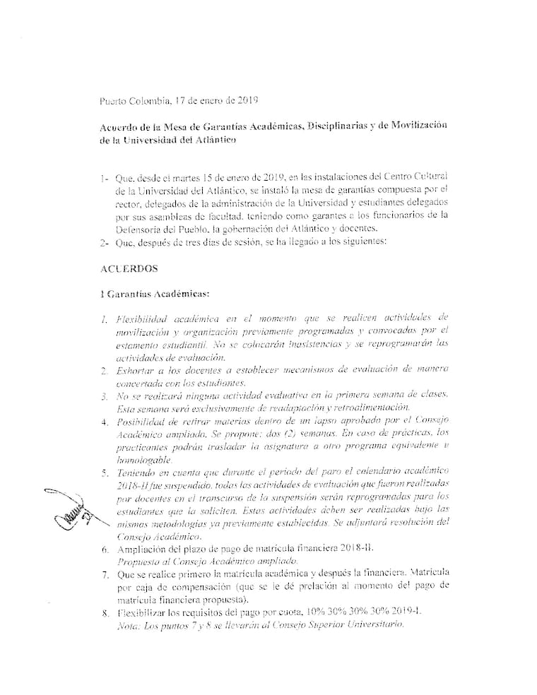 Luego de varias reuniones entre el consejo académico y los estudiantes de la Institución, se llegó al consenso de que todos los alumnos de las 10 facultades regresan a las aulas el próximo lunes 21 de enero, luego del paro estudiantil que inició el 10 de octubre de 2018.