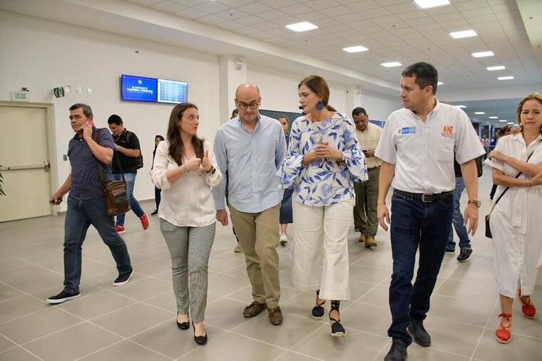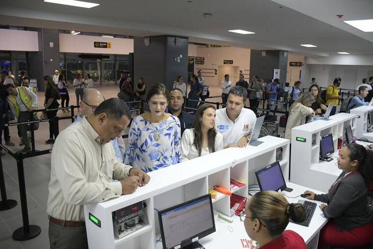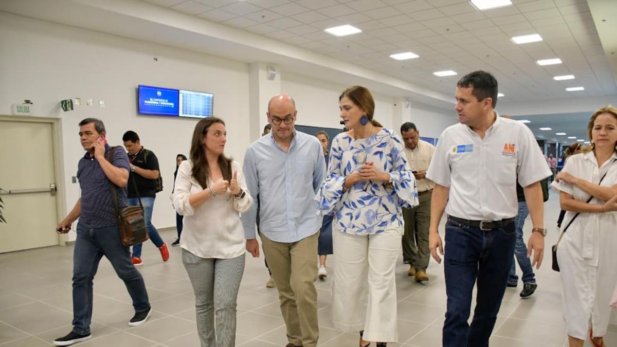 La nueva zona de check-in y la rampa de ingreso del aeropuerto Ernesto Cortissoz de Barranquilla fueron puestas en funcionamiento en la madrugada de este miércoles. La ministra de Transporte, Ángela María Orozco, junto a la alta consejera presidencial para las Regiones y gerente de la Asamblea del BID 2020, Karen Abudinen, realizaron un recorrido por las nuevas instalaciones de la terminal aérea.