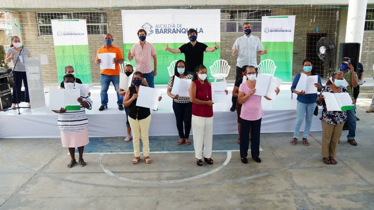 Como María Inés, 213 personas más de este sector recibieron los documentos que los acreditan como propietarios de sus hogares. Las escrituras las recibieron de manos del alcalde Jaime Pumarejo, quien estuvo acompañado por el secretario Privado, Alfredo Carbonell, y el secretario de Planeación, Juan Manuel Alvarado.
