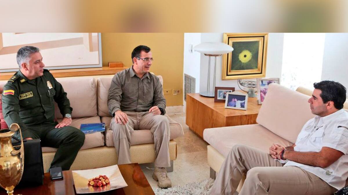 El alcalde de Barranquilla, Alejandro Char; el director de la Dijin, Jorge Luis Vargas, y el comandante de la Regional Ocho, general Gonzalo Londoño, se reunieron la mañana de este viernes para analizar la situación de seguridad en Barranquilla.