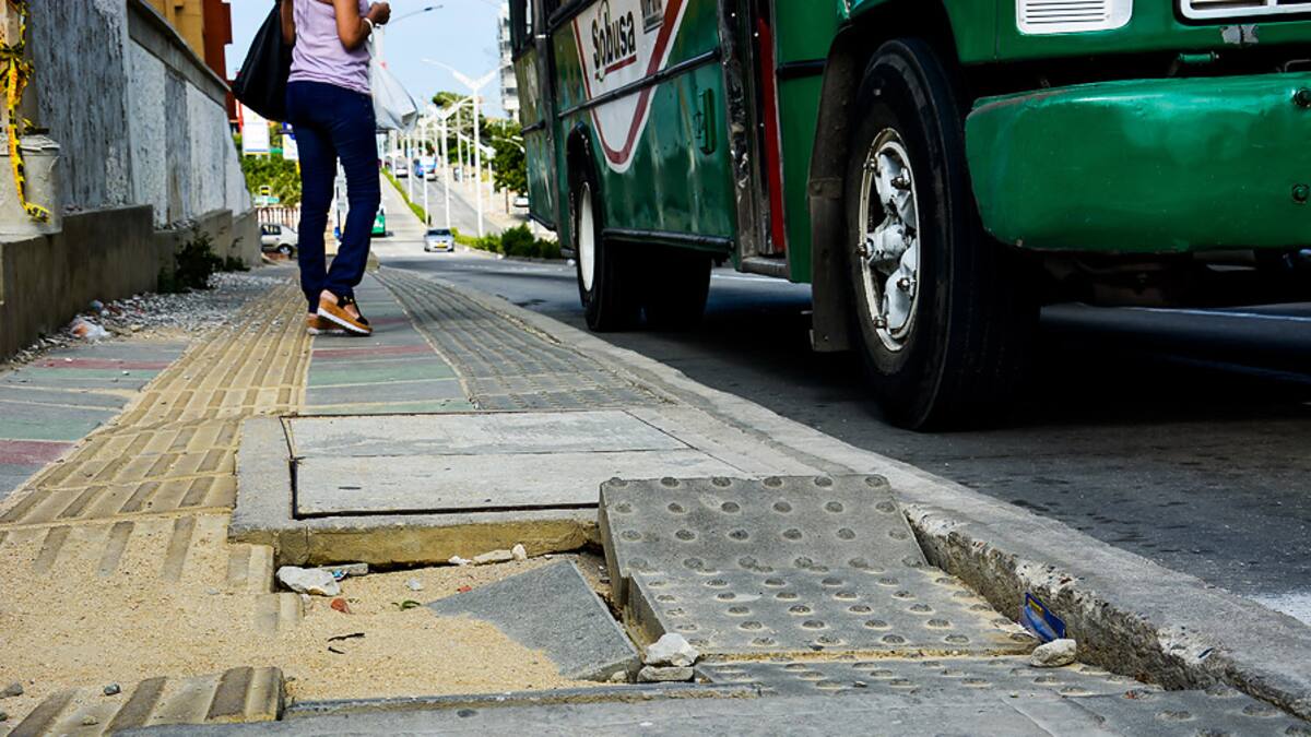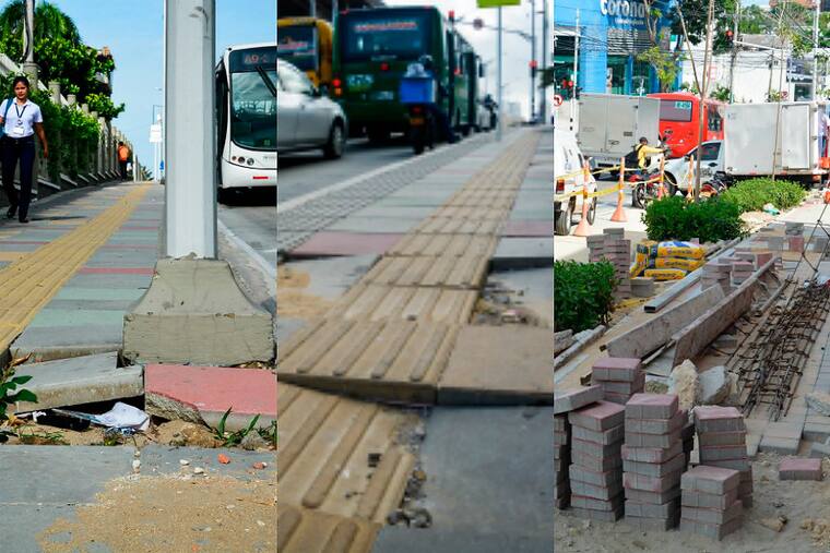 La barranquillera, dedicada a atender en una peluquería del sector, reconoce que 'las losas parece que nos las hubieran pegado bien, sino que se van hundiendo', dijo, mientras atravesaba el semáforo de la calle 85.