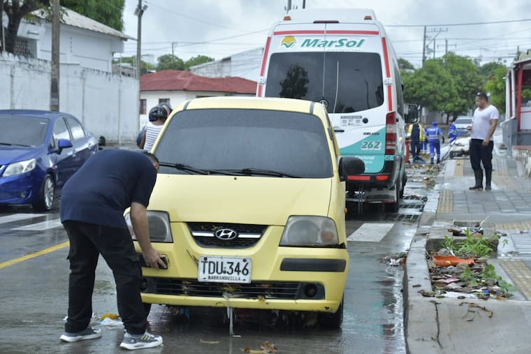 Un taxi y un vehículo particular de color gris fueron arrastrados por un arroyo al mediodía de este jueves 30 de mayo, en el barrio Los Andes, en la localidad Suroccidente de Barranquilla.