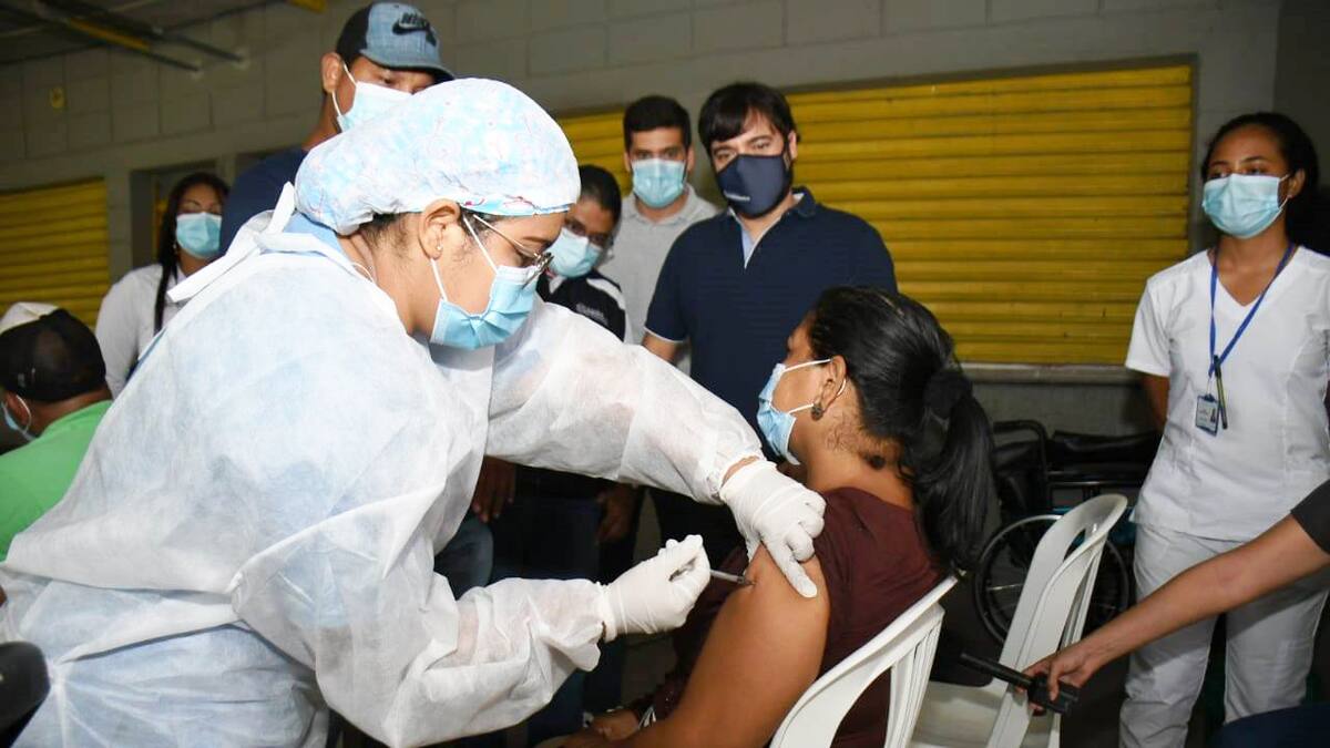 El alcalde Jaime Pumarejo acompañó este lunes a Saray Mendoza, la persona número 500.000 en aplicarse la dosis de la vacuna contra la covid en Barranquilla.