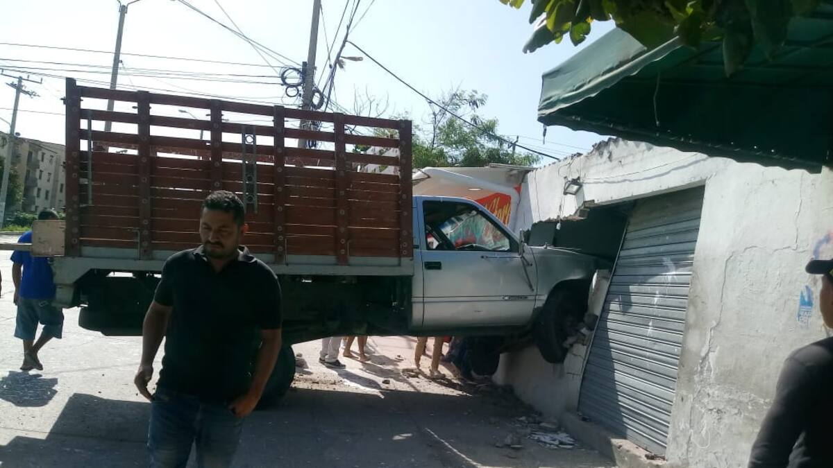 Tremendo susto pasaron la mañana de este viernes los vecinos aledaños a la carrera 38 con calle 84, sector de ‘el tobogán’ luego de que un camión tipo estaca quedó incrustado en un local comercial, reportaron usuarios de la línea Wasapea de EL HERALDO.