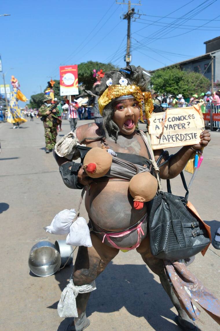 Además de las grandes comparsas, el colorido de los disfraces típicos y la música, por la Vía 40 en la Batalla de Flores también se ven curiosidades, digna de la creatividad de los barranquilleros.