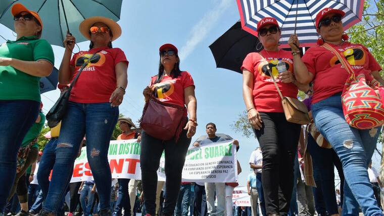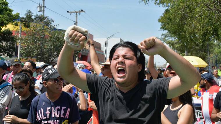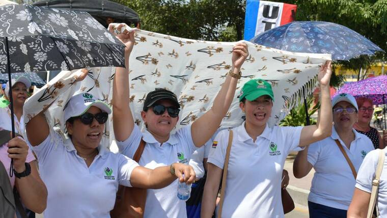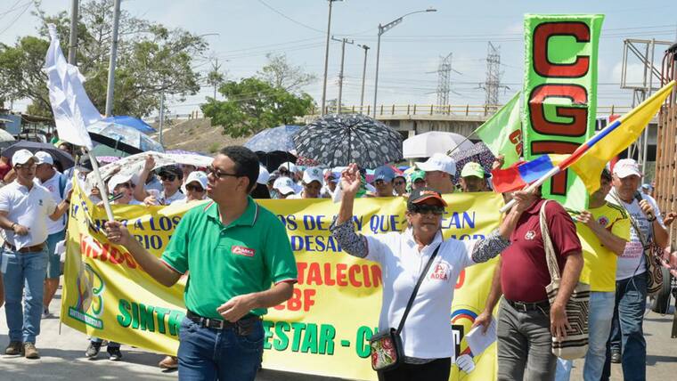 Integrantes del magisterio, trabajadoras del bienestar familiar, estudiantes de la Universidad del Atlántico y docentes se unieron a la marcha que salió desde el colegio Inem y culminó en la bandera de la rotonda de la 17.