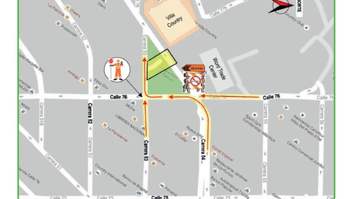 La secretaría dijo a través de un comunicado de prensa que por el cierre se aplicarán desvíos: Los conductores que transitan por la Carrera 54 hacia Villa Country, girarán a la izquierda por la Calle76 hasta la carrera 53, allí girarán a la derecha y seguirán hacia su destino. Y los conductores que transitan por la calle 76 hacia Villa Country, cruzarán a la derecha por la Carrera 53 hacia su destino.