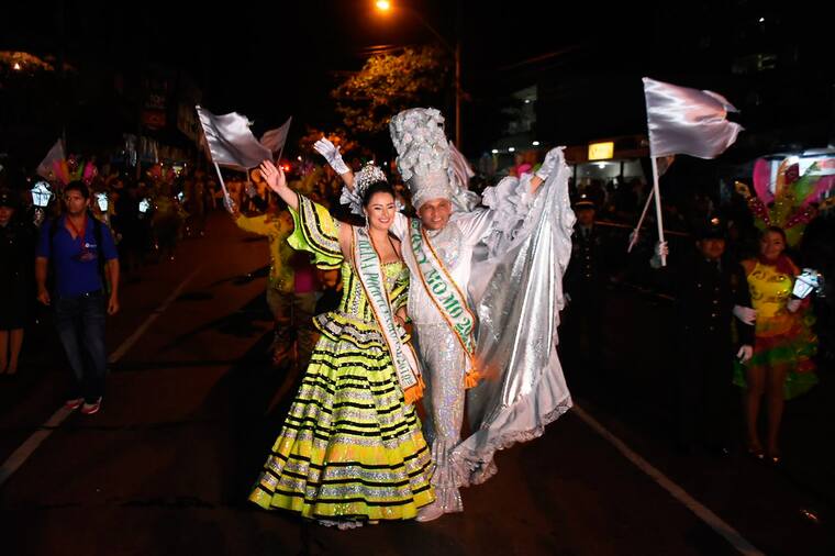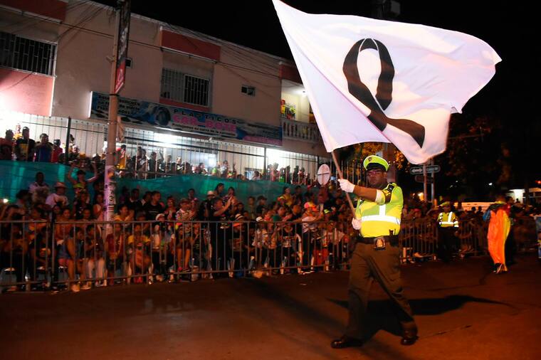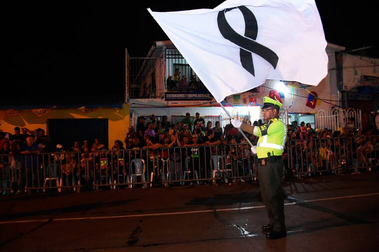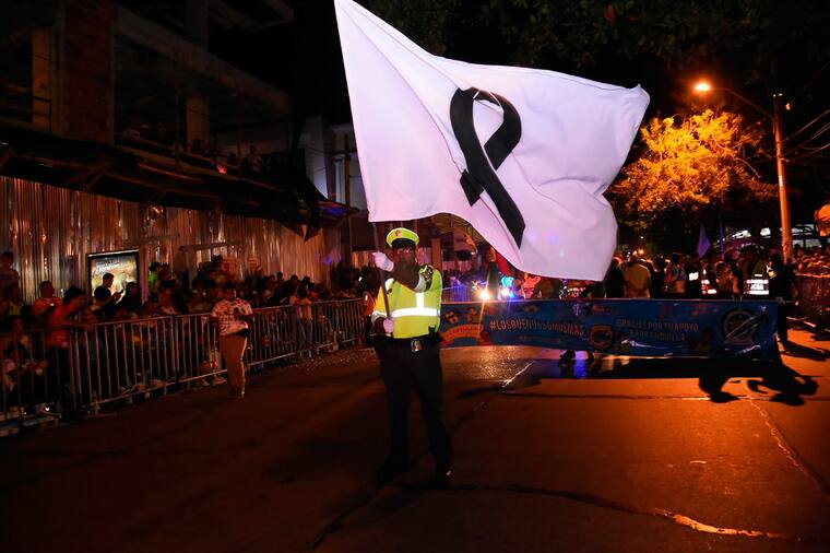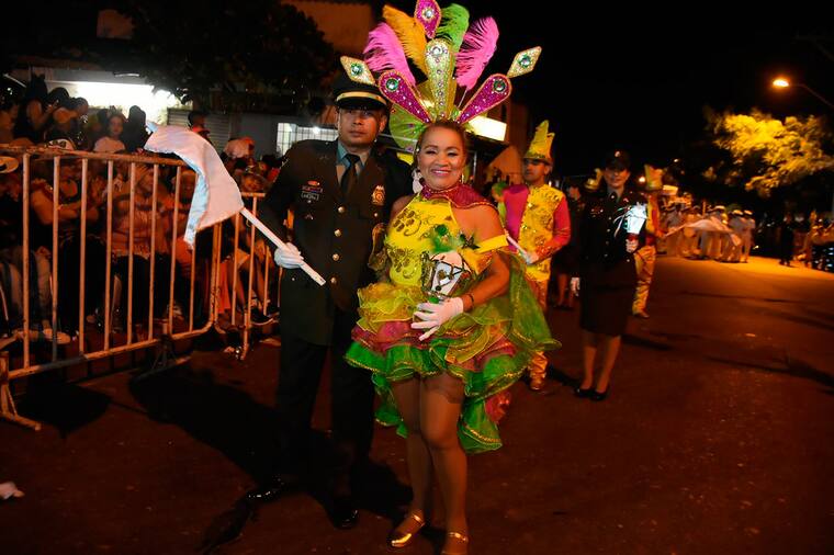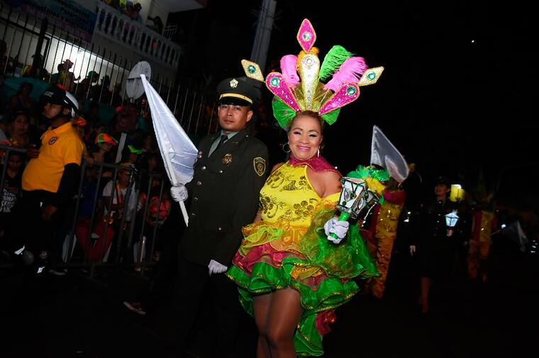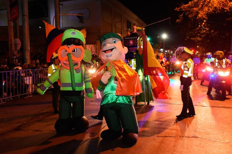Encabezando el desfile de la carrera 44 con banderas blancas el grupo de la Policía abrió la noche de Guacherna. Los uniformados de la agrupación ‘Fanfarria’ no bailaron durante el recorrido, hicieron una caminata con faroles blancos en homenaje a los héroes caídos en los atentados a las estaciones de Policía.