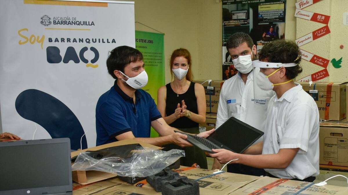 El alcalde Jaime Pumarejo destacó la entrega de estos equipos para el beneficio de los estudiantes de las instituciones educativas distritales. 'Estamos contentos porque estamos recibiendo de la mano de Computadores para Educar la segunda entrega este año de 1.500 computadores, más 1000 que habíamos recibido antes. Eso significa que hay 2.500 computadores adicionales para nuestros estudiantes, que les ayudan a cumplir sus sueños, a perseguir sus anhelos, a sentirse conectados con el mundo y a hacer más fácil un tiempo como este. Estos 1500 computadores se van a ir, la mayoría, en préstamo para los estudiantes que no tienen acceso a la tecnología en sus hogares y les permitirán de una manera más fácil acceder a sus clases virtuales', expresó el mandatario de los barranquilleros.