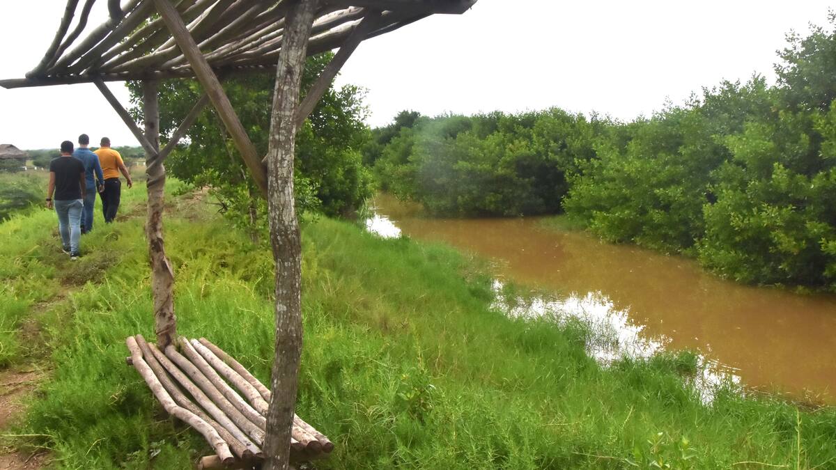 Aunque, también como se observa en la imagen, desde el hotel sale un canal hacia la laguna de color marrón más evidente, al igual que del pequeño arroyo que se extiende de esta hacia el edificio junto a la vía a Sabanilla.