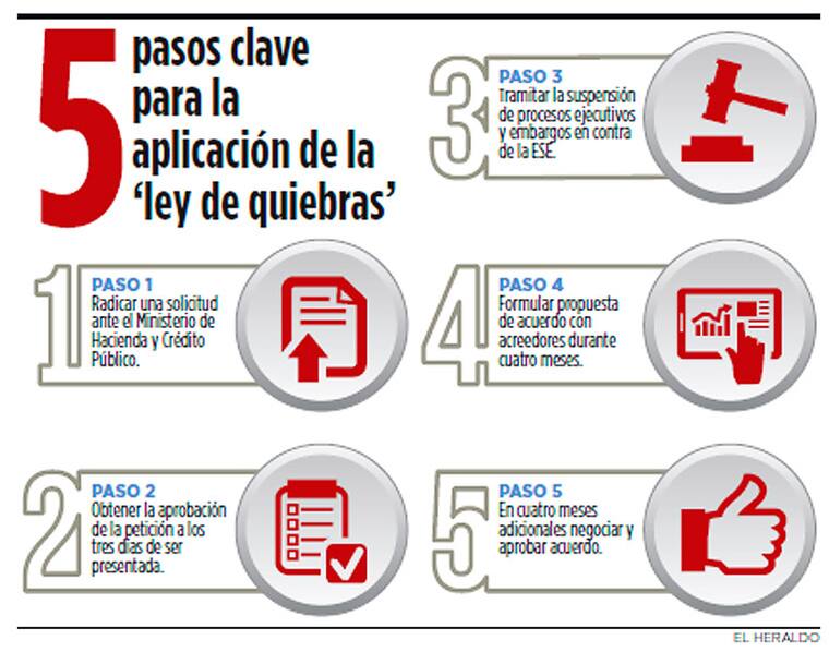 Una vez sea presentada la solicitud, el Ministerio de Hacienda deberá aceptarla dentro de los tres días siguientes a su recepción. Posteriormente, de acuerdo a la Ley, el Ministerio designará a un promotor que se encargue de hacer seguimiento al proceso de negociación y celebración del acuerdo con los acreedores del hospital, además de analizar el patrimonio de la empresa durante los últimos tres años, determinar los derechos de votos de los acreedores, entre otras funciones.
