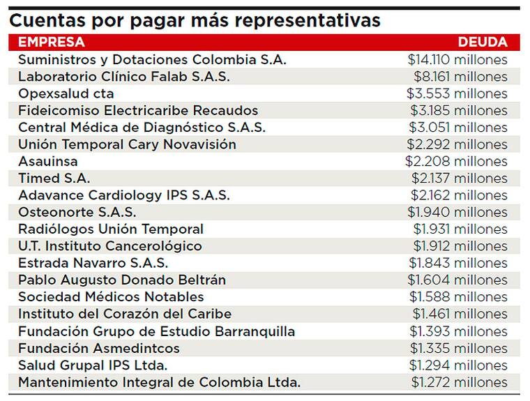 Actualmente —indica el documento— los pasivos del hospital son de $80.364 millones, aunque la Secretaría de Salud Departamental había informado que alcanzaban los $90.000 millones.