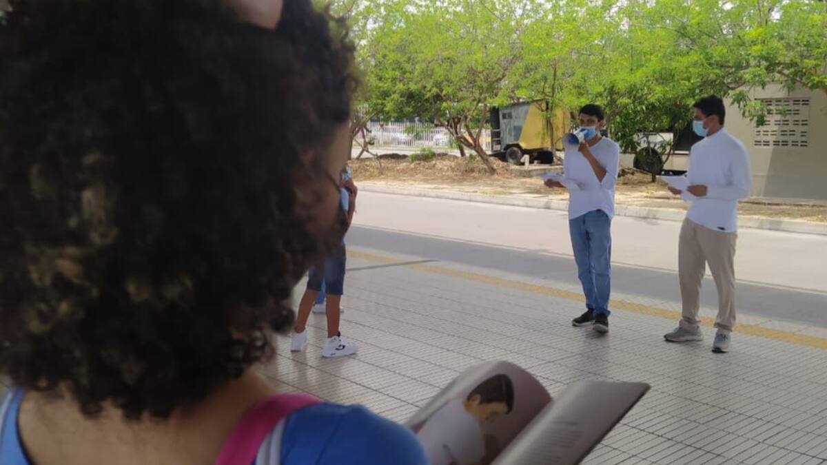 Este sábado usuarios del Sistema de Transporte Masivo Transmetro disfrutaron de ‘Lectura a bordo’, actividad en alianza con la Biblioteca Piloto del Caribe en la que se leyeron fragmentos de importantes obras literarias en la estación Joe Arroyo, en conmemoración al Día del Idioma.