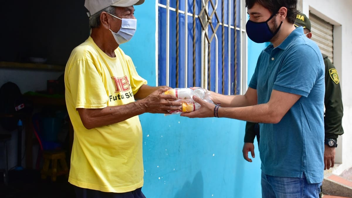 'Hoy estamos en el cerco Suroriente entregando 150 kits de vitaminas, de más de 1000 que donó la Fundación Procaps, con los cuales buscamos llegar al adulto mayor para subir sus defensas y de esa manera combatir de una mejor manera el virus', explicó el alcalde Pumarejo.