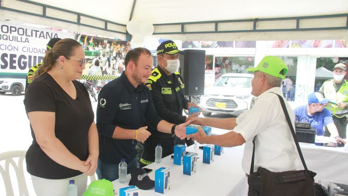 Este martes, la Alcaldía Distrital a través de la Oficina para la Seguridad y Convivencia Ciudadana, en articulación con la Policía Metropolitana de Barranquilla, hicieron entrega de 14 dispositivos móviles y tres cámaras de vigilancia al primer frente de seguridad en Caribe Verde, para buscar garantizar tranquilidad en el sector.