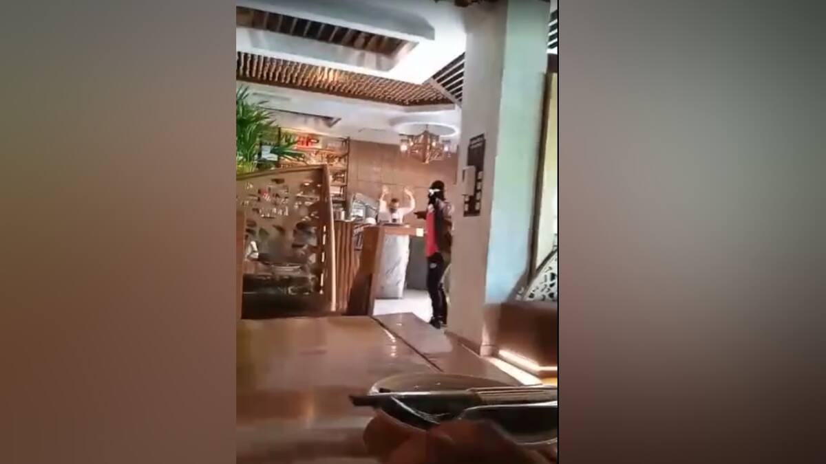 En la grabación quedó registrado que un hombre con el rostro cubierto entra al sitio con un arma e intenta intimidar a las personas que se encuentran en el lugar.