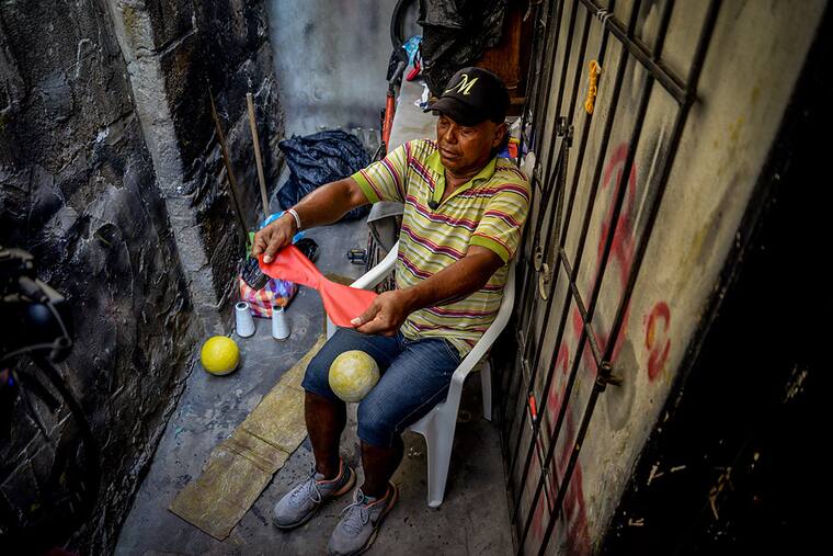 En la cuna. Hay que caminar por calles de arena ardiente para llegar a ver cómo nacen las bolas de trapo en las manos de Miguel Ángel Márquez. Arena bañada por los ríos gemelos de la pobreza y la violencia.