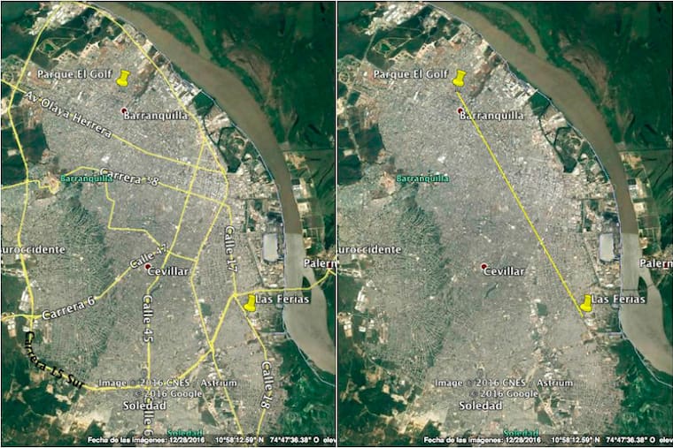La calle se va angostando bajo una telaraña de cables negros. Suena algo del Joe Arroyo. Tres niños descamisados hacen bailar un trompo con jalones de cabuya. Las Ferias es casi un camino hacia el río Magdalena. Queda en sus orillas, más abajo del puente Pumarejo, ya en jurisdicción de Soledad. Hay que sumergirse en una zanja por la calle 17 para llegar al barrio. Un palo de mango en la esquina es la referencia para ubicar la cuadra de Miguel. Solo entran los llamados ‘bicitaxis’ y ‘carricoches’.
