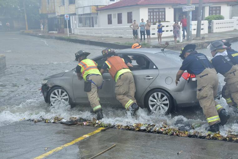 Al sitio llegaron miembros del Cuerpo de Bomberos para socorrer a los conductores y sacar los vehículos de la corriente de agua. Parte de la carrocería sufrió daños por golpes contra el andén y, por fortuna, ninguna persona resultó lesionada.