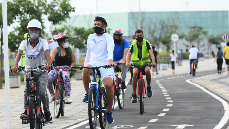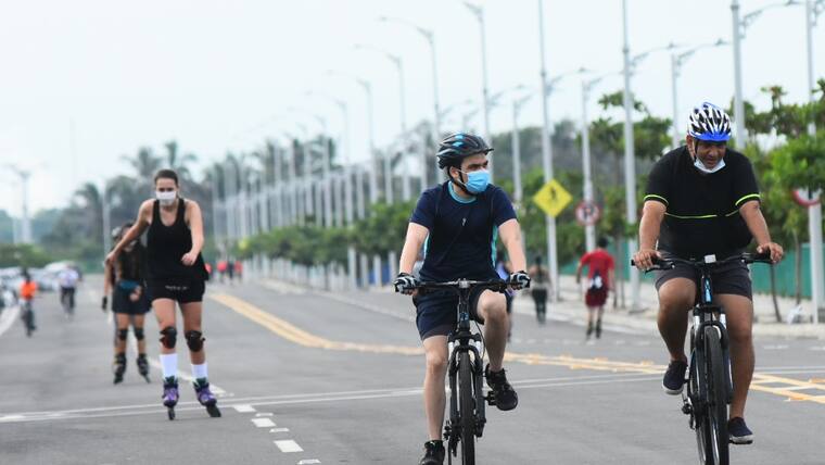 Así mismo, durante el recorrido realizado por EL HERALDO por diferentes parques y lugares destinados a la realización de ejercicios, se evidenció gran afluencia de personas caminando, trotando, montando bicicletas y patinando, pero respetando el distanciamiento social y el uso del tapabocas.