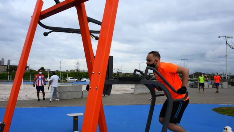 En el primer día sin restricción de horario para realización de actividad física, al igual que el uso de los gimnasios biosaludables en los parques de la ciudad, se pudo observar a varias personas sin tapabocas y violando el distanciamiento.