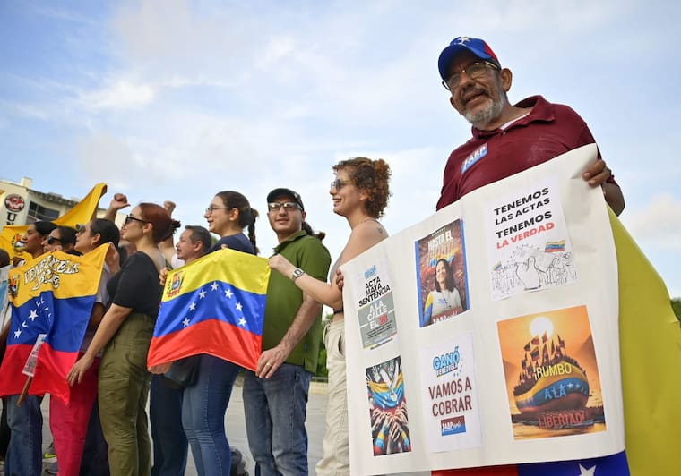Con pancartas y banderas, los manifestantes reafirmaron su petición de que finalice el régimen en Venezuela y posibilitar el regreso de las cientos de personas que salieron de su tierra natal en busca de un mejor porvenir.