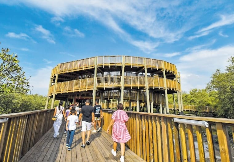 El ecoparque tiene dos senderos que los visitantes podrán disfrutar: el sendero manglar, que se ubica en su mayoría sobre tierra, y donde se encuentra oferta gastronómica, muelle náutico y deportivo, torre mirador y senderos en tierra con circulación inmersa entre los mangles y sus especies. Y el sendero estuario, donde los visitantes encontrarán senderos en su mayoría sobre agua con vistas panorámicas a la ciudad y al humedal, muelle náutico y deportivo, locales gastronómicos y de hidratación, y el Centro de Innovación y Tecnología.