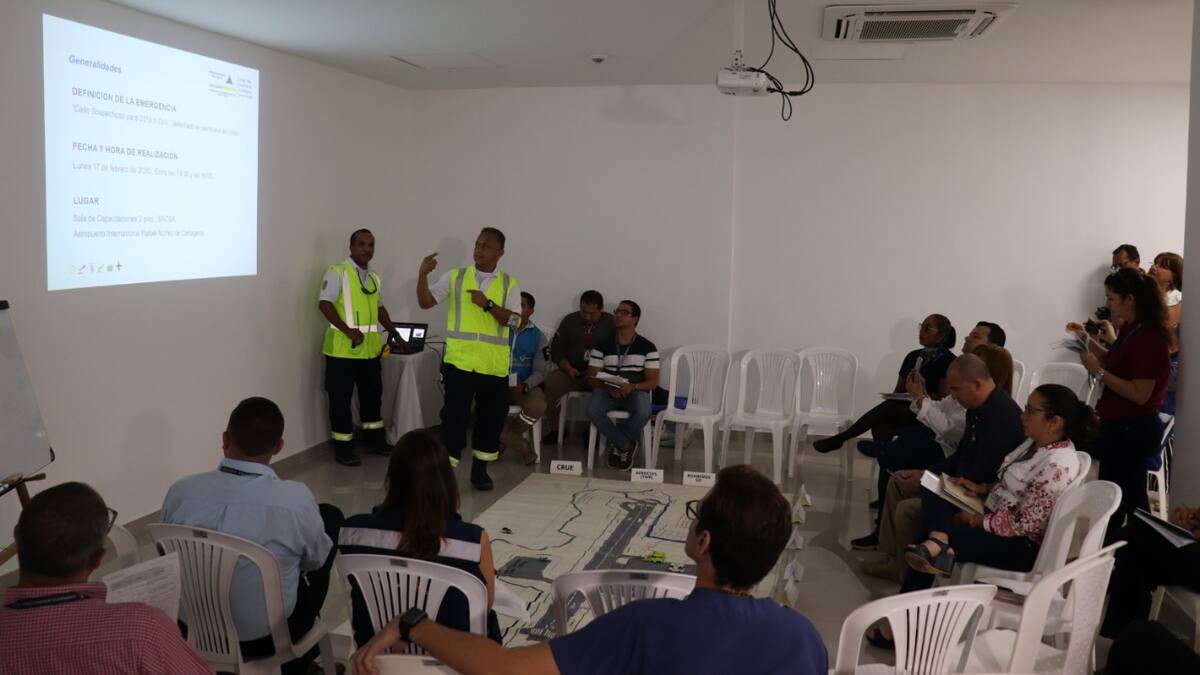 En el aeropuerto internacional Rafael Núñez de Cartagena desarrollan un plan de emergencia de salud pública con aerolíneas y demás entidades que hacen parte de la comunidad aeroportuaria con simulacros y acciones de tamizaje a viajeros que hayan estado los últimos 14 días en China. Además, se ubicaron geles anti-bacteriales en la salas de llegadas nacional e internacional.