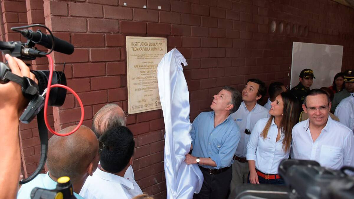 El presidente Juan Manuel Santos inauguró la mañana de este viernes el megacolegio Villa Olímpica, ubicado en el municipio de Galapa, para educar a 1.500 estudiantes de ese municipio del Atlántico desde transición hasta décimo grado.