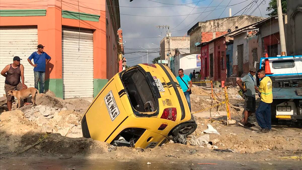 El hecho se registró en la mañana de este domingo, en la calle 30 con carrera 35, donde se vienen realizando unas obras. De acuerdo con algunos testigos, el conductor del vehículo, que recibió golpes menores, cayó en el hueco luego de hacer una maniobra para no atropellar a una mujer que caminaba por el sector.